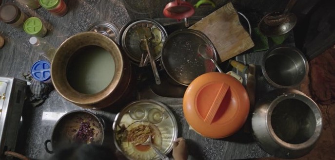 சமயலறைகளை, வீட்டின் அனேகப் பொறுப்புகளைத் தன் தலைமேல் சுமப்பதில் பல தசாப்பதங்களைக் கடந்து கொண்டிருக்கிறாள் பெண். இதை ஒரு மிக நுட்பமாக ஒரு காட்சியினூடு சொல்லிவிடும் திறமை இப்படத்தின் இயக்குனரிடம் இருக்கிறது.