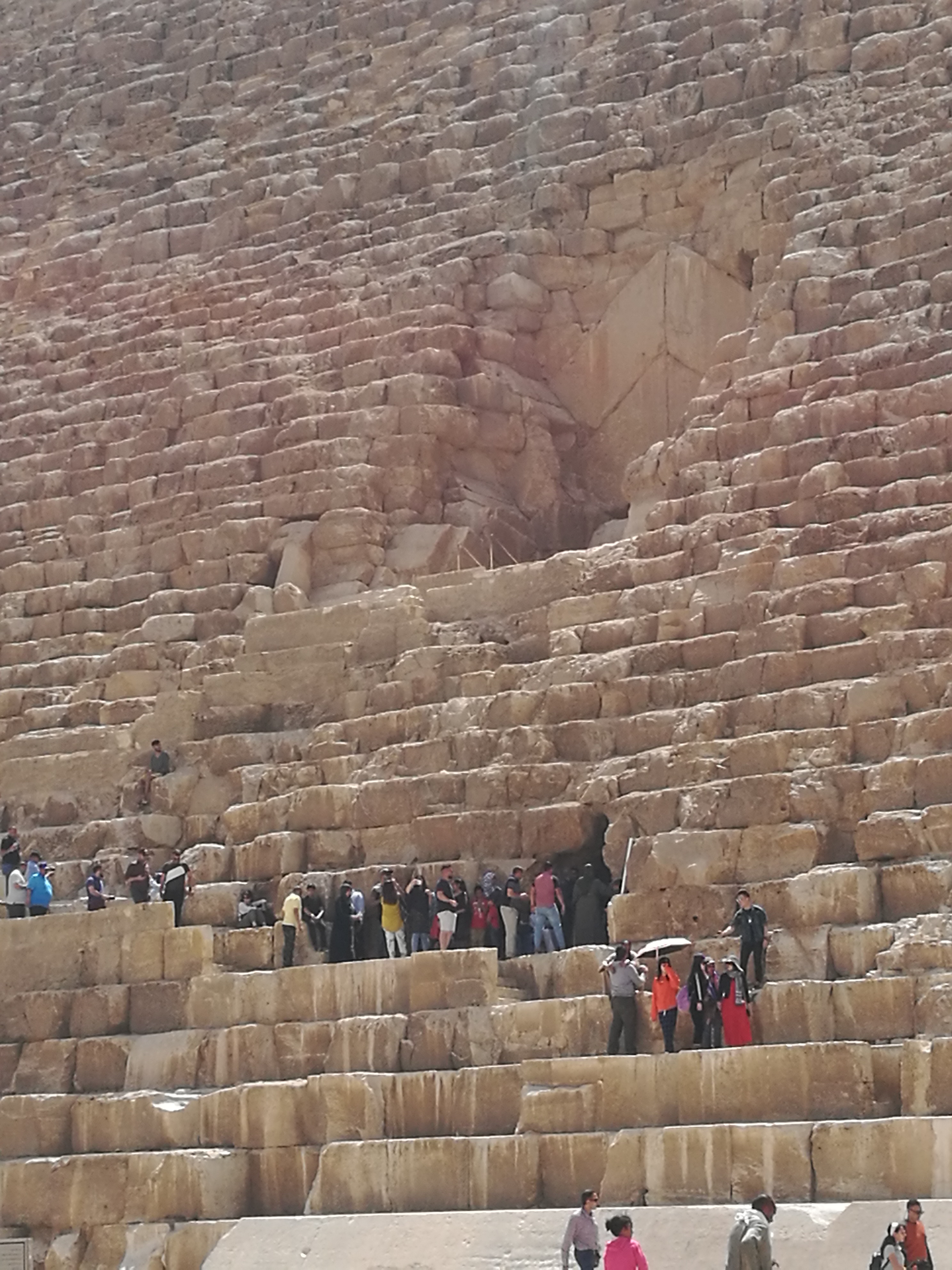 எகிப்தின் மிகப்பெரிய பிரமிடுகளில் ஒன்றான கூபு மற்றும் காப்ராவின் பிரமிடுக்குள் நுழைவதற்கான நுழைவுச் சீட்டைப் பெற்றுக் கொண்டேன். பொ.ஆ.மு 2250-இல் கட்டப்பட்ட இந்தப் பெரிய பிரமிடு ஏறத்தாழ 4250 ஆண்டுகள் தொன்மையுடையது. ஒவ்வொரு பிரமிடுகளுக்கு உள்ளும் நாம் நுழைந்து பார்க்க முடியும். ஒருவர் மட்டுமே நுழையக் கூடிய வாயில். உள்ளே பாறைகளைக் குடைந்தெடுத்து மேல்நோக்கி நகரும் படிக்கட்டுக்கள் இருக்கின்றன. சில இடங்களில் பலகைப் படிகள் உள்ளது. பாதி தூரம் நாம் குனிந்த படியே தான் செல்ல முடியும். ஒருவகை இடுக்கமான பாதை. மூச்சு முட்டுவது போல இருக்கும்.
